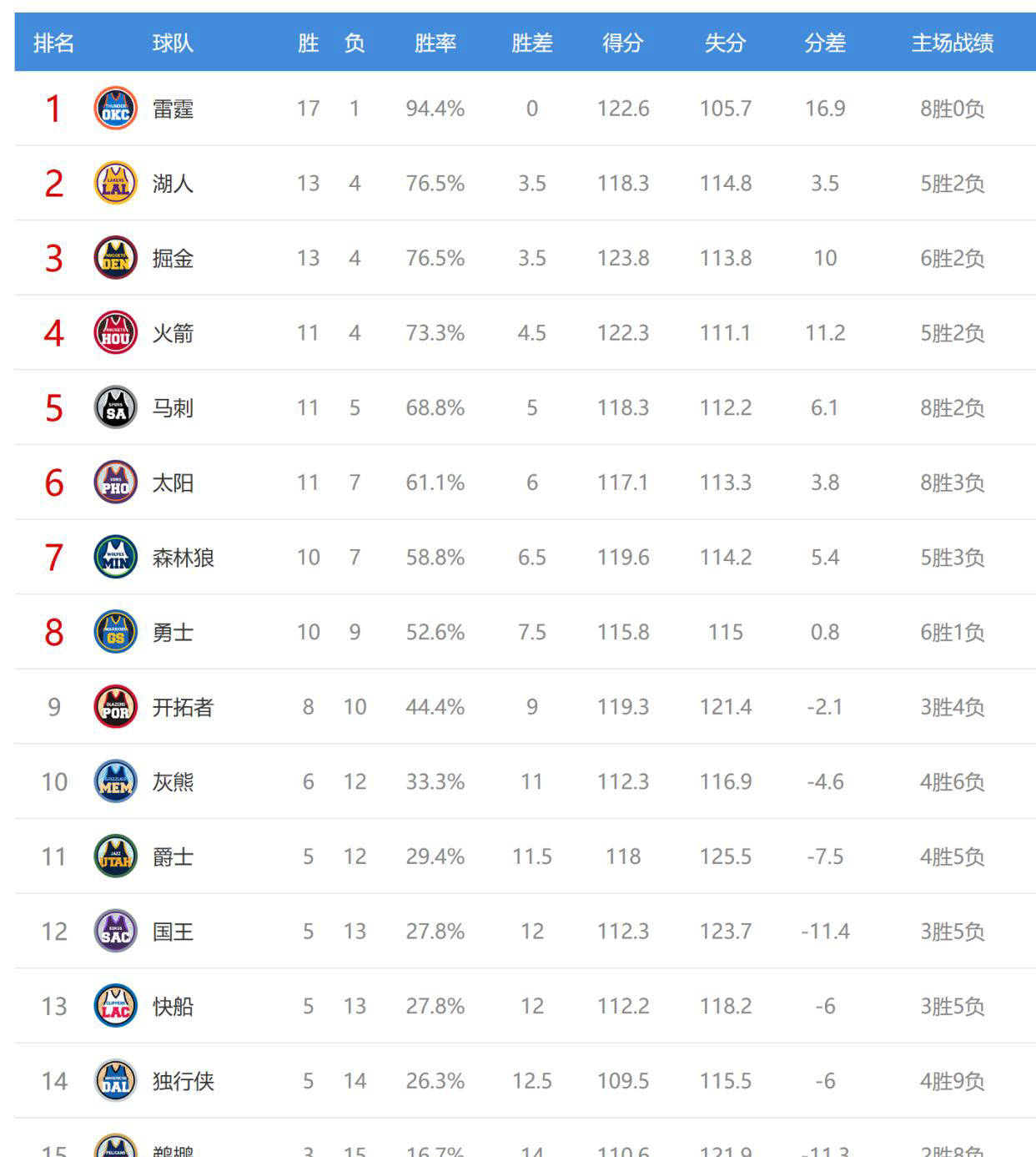 此次比赛结束后,西部排名出现四支队伍互换局面:湖人与掘金互换二三名,快船与国王交换12、13名,其他球队排名维持不变。新的排名进一步激化了西部季后赛席位的争夺,也让球迷对接下来的比赛充满期待。返回搜狐,查看更多