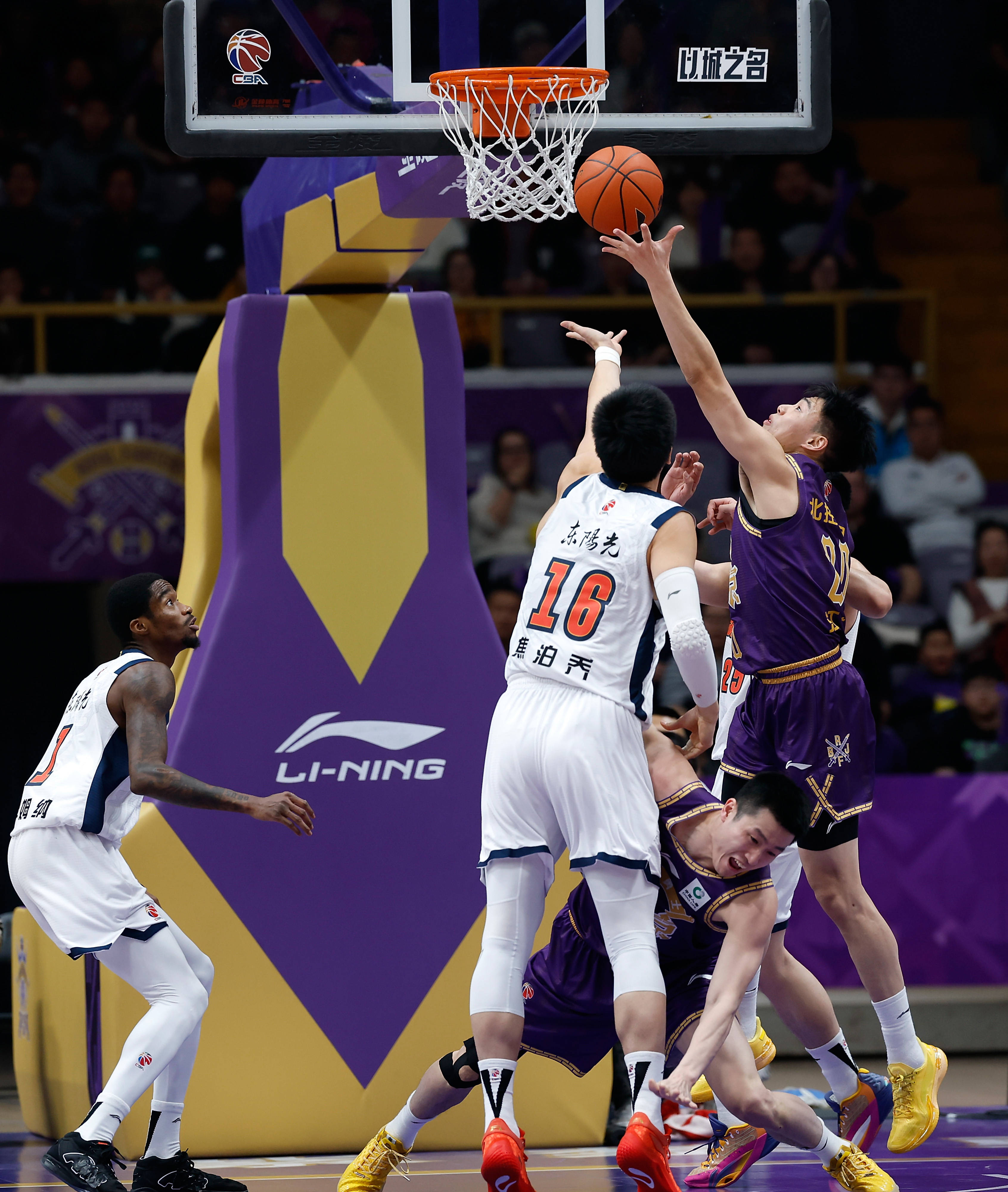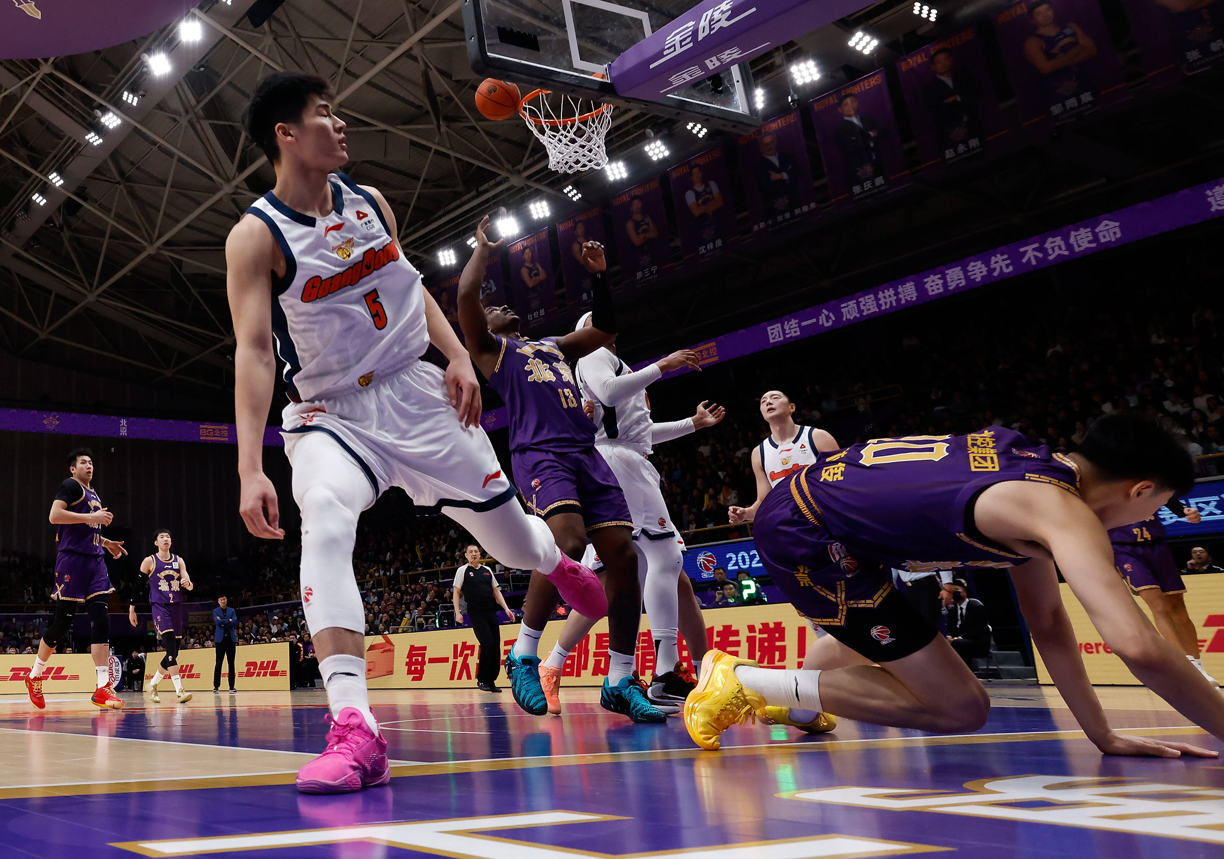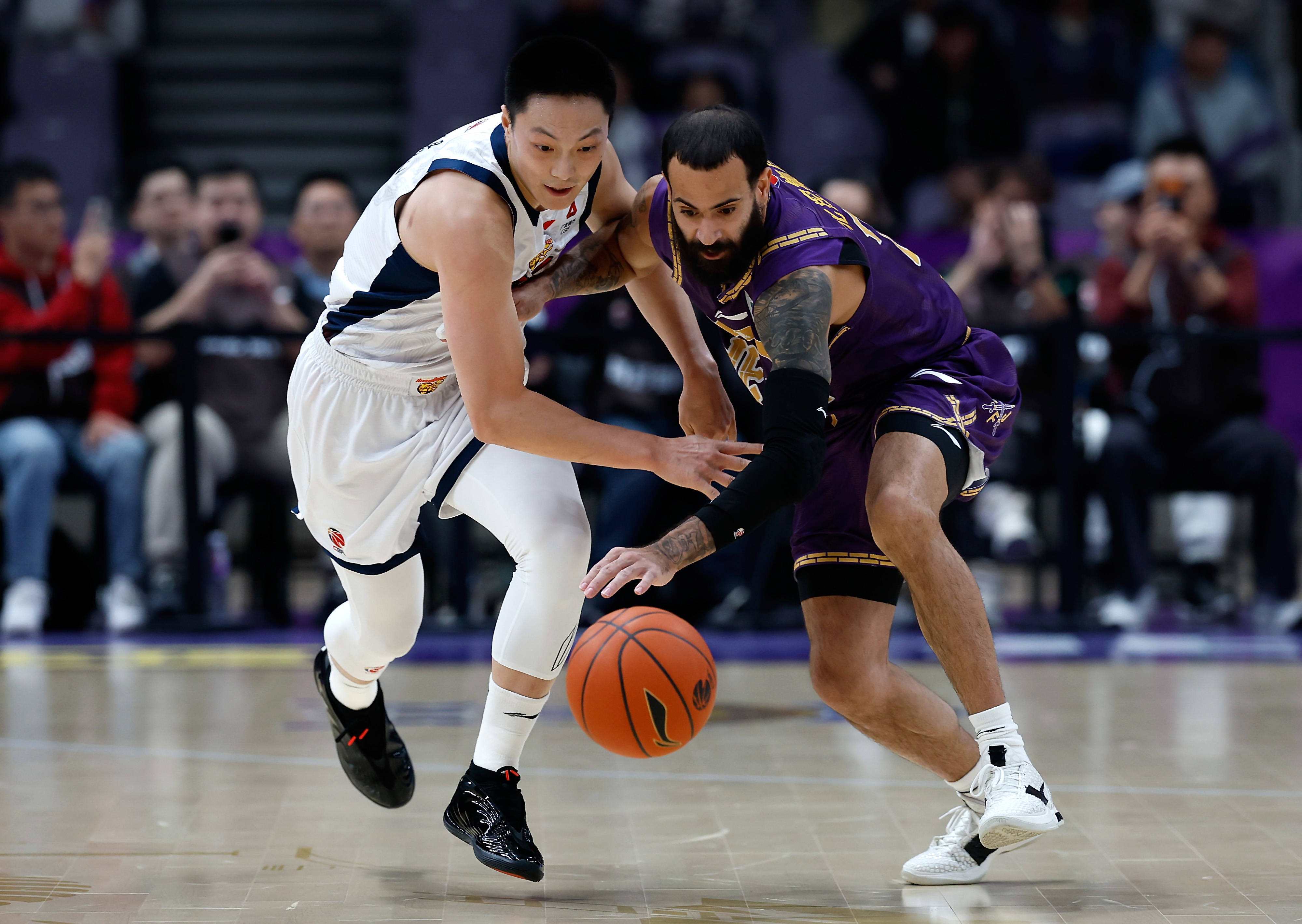 1月3日,广东东阳光队球员李文昊(上)在比赛中争球。 新华社记者 王丽莉 摄