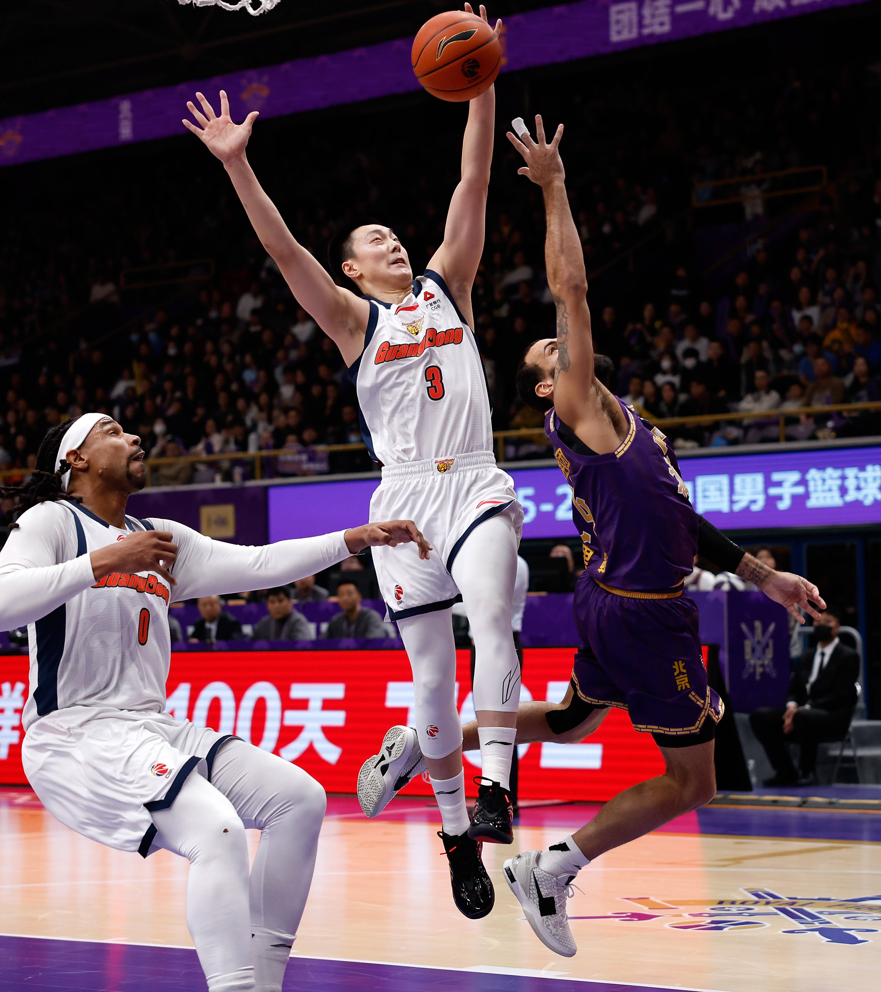 1月3日,北京控股队球员格兰特·里勒(右二)在比赛中上篮。 新华社记者 王丽莉 摄